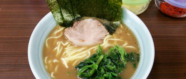 武蔵家 Posted on 2014年7月30日 by chips in ラーメン, 川口 // 0 Comments 川口での家系ラーメン2軒目。 以前行った川口家に続いて、武蔵家という店に行ってきた。麺の固さ、味の濃さ、油の多さを選択できるのは川口家と同じだけども、こちらは味の選択項目はなく、醤油味のみのようだった。塩のほうが好きなので少々残念。出てきたラーメンは家系テンプレ通りの、海苔、チャーシュー、ほうれん草。 ラーメン。650円。